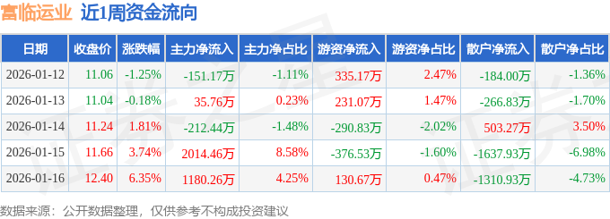 资金流向数据方面,本周富临运业主力资金合计净流入2866.87万元,游资资金合计净流入29.55万元,散户资金合计净流出2896.42万元。本周资金流向一览见下表: