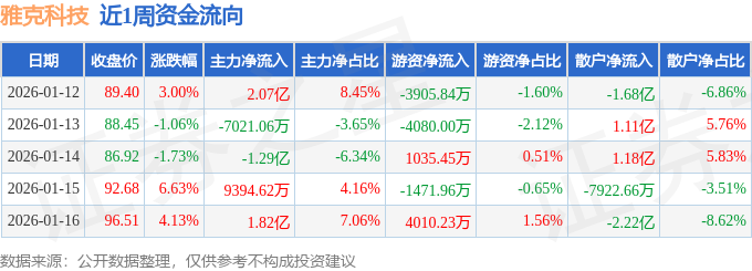 资金流向数据方面,本周雅克科技主力资金合计净流入2.84亿元,游资资金合计净流出4412.13万元,散户资金合计净流出2.39亿元。本周资金流向一览见下表: