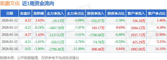 资金流向数据方面,本周凯撒文化主力资金合计净流出6265.06万元,游资资金合计净流出1000.26万元,散户资金合计净流入7265.32万元。本周资金流向一览见下表: