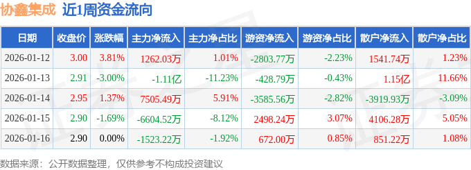 资金流向数据方面,本周协鑫集成主力资金合计净流出1.05亿元,游资资金合计净流出3647.87万元,散户资金合计净流入1.41亿元。本周资金流向一览见下表: