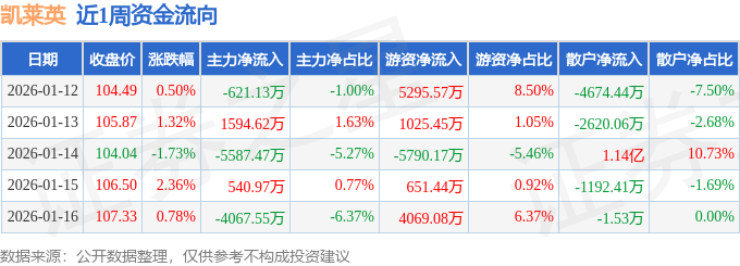 资金流向数据方面,本周凯莱英主力资金合计净流出8140.57万元,游资资金合计净流入5251.37万元,散户资金合计净流入2889.2万元。本周资金流向一览见下表: