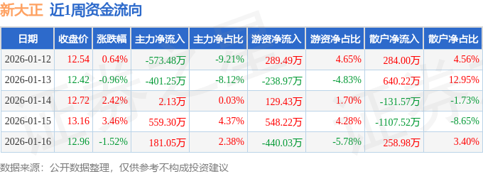 资金流向数据方面,本周新大正主力资金合计净流出232.25万元,游资资金合计净流入288.14万元,散户资金合计净流出55.88万元。本周资金流向一览见下表: