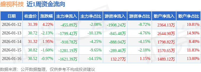 沪深股通持股方面,截止2026年1月16日收盘,盛视科技深股通持股数为136.13万股,占流通股比为102.0%。