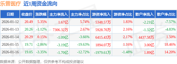 资金流向数据方面,本周乐普医疗主力资金合计净流出3.57亿元,游资资金合计净流入1.76亿元,散户资金合计净流入1.81亿元。本周资金流向一览见下表: