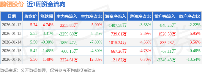 资金流向数据方面,本周鹏翎股份主力资金合计净流出229.78万元,游资资金合计净流入1135.75万元,散户资金合计净流出905.96万元。本周资金流向一览见下表: