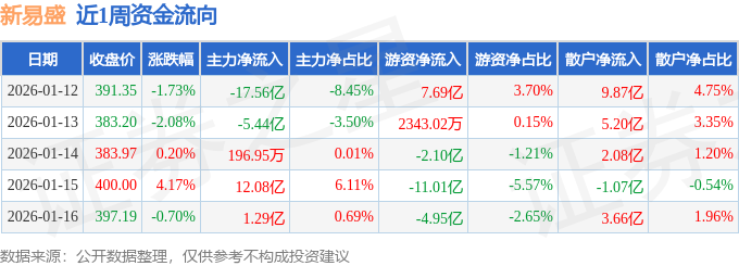 沪深股通持股方面,截止2026年1月16日收盘,新易盛深股通持股数为2992.97万股,占流通股比为478.0%。