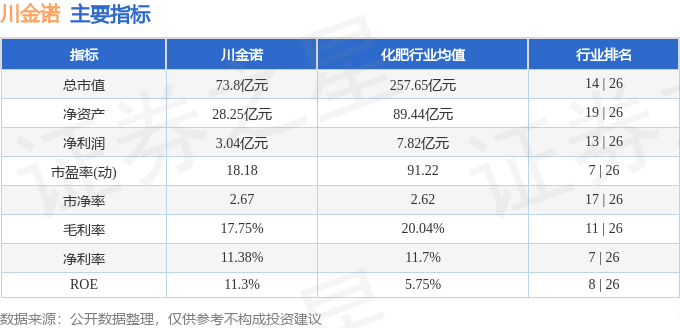 该股主要指标及行业内排名如下: