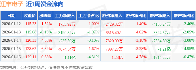 资金流向数据方面,本周江丰电子主力资金合计净流出8694.26万元,游资资金合计净流入3.71亿元,散户资金合计净流出2.84亿元。本周资金流向一览见下表: