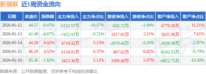 资金流向数据方面,本周新强联主力资金合计净流入671.15万元,游资资金合计净流入2707.88万元,散户资金合计净流出3379.02万元。本周资金流向一览见下表:
