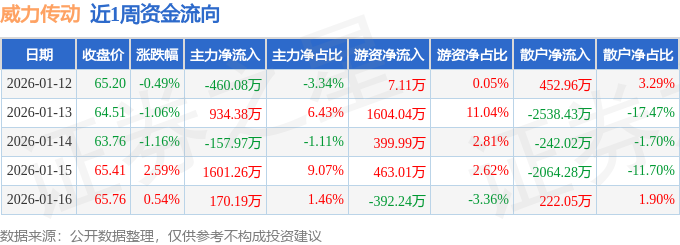 资金流向数据方面,本周威力传动主力资金合计净流入2087.79万元,游资资金合计净流入2081.92万元,散户资金合计净流出4169.71万元。本周资金流向一览见下表: