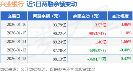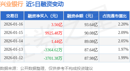证券之星消息,1月16日,兴业银行(601166)融资买入5.08亿元,融资偿还1.51亿元,融资净买入3.56亿元,融资余额93.64亿元,当日融资净买入排名第19,近3个交易日已连续净买入累计6.0亿元,近20个交易日中有12个交易日出现融资净买入。