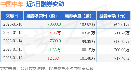 证券之星消息,1月16日,中国中车(601766)融资买入2.21亿元,融资偿还7712.13万元,融资净买入1.44亿元,融资余额26.27亿元。