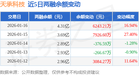 证券之星消息,1月16日,天承科技(688603)融资买入1.54亿元,融资偿还9186.63万元,融资净买入6231.2万元,融资余额4.3亿元,近20个交易日中有11个交易日出现融资净买入。
