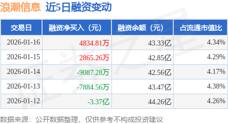 证券之星消息,1月16日,浪潮信息(000977)融资买入4.17亿元,融资偿还3.68亿元,融资净买入4834.81万元,融资余额43.33亿元。
