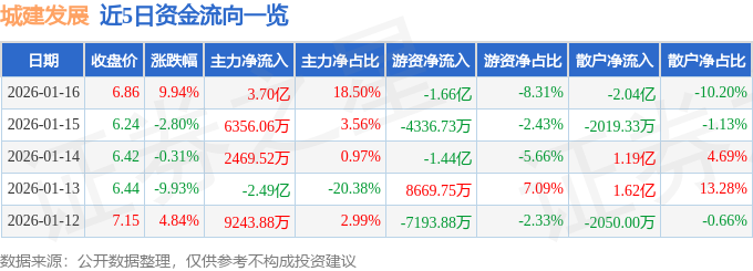 1月16日的资金流向数据方面,主力资金净流入3.7亿元,占总成交额18.5%,游资资金净流出1.66亿元,占总成交额8.31%,散户资金净流出2.04亿元,占总成交额10.2%。