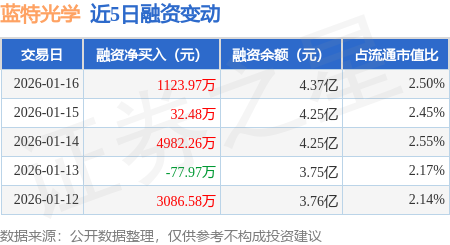 证券之星消息,1月16日,蓝特光学(688127)融资买入4670.56万元,融资偿还3546.59万元,融资净买入1123.97万元,融资余额4.37亿元,近3个交易日已连续净买入累计6138.72万元,近20个交易日中有16个交易日出现融资净买入。
