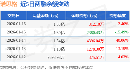 证券之星消息,1月16日,诺思格(301333)融资买入4009.49万元,融资偿还3697.86万元,融资净买入311.62万元,融资余额1.33亿元,近20个交易日中有11个交易日出现融资净买入。