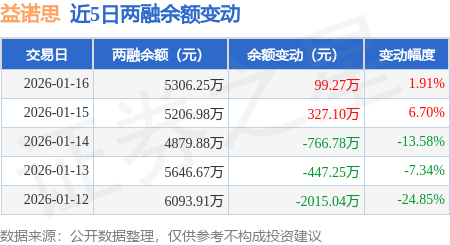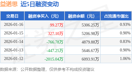 证券之星消息,1月16日,益诺思(688710)融资买入1100.97万元,融资偿还1001.7万元,融资净买入99.27万元,融资余额5306.25万元,近20个交易日中有11个交易日出现融资净买入。