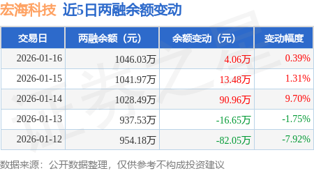 证券之星消息,1月16日,宏海科技(920108)融资买入59.33万元,融资偿还55.27万元,融资净买入4.06万元,融资余额1046.03万元,近3个交易日已连续净买入累计108.49万元。