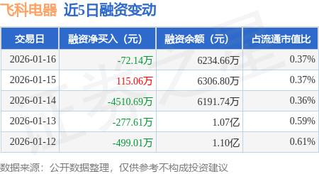 证券之星消息,1月16日,飞科电器(603868)融资买入814.61万元,融资偿还886.75万元,融资净卖出72.14万元,融资余额6234.66万元,近20个交易日中有12个交易日出现融资净买入。