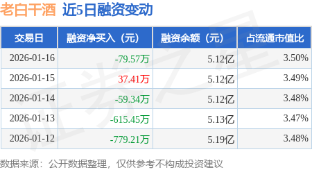 证券之星消息,1月16日,老白干酒(600559)融资买入735.32万元,融资偿还814.89万元,融资净卖出79.57万元,融资余额5.12亿元。