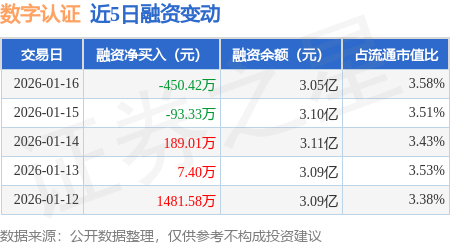 证券之星消息,1月16日,数字认证(300579)融资买入2715.72万元,融资偿还3166.14万元,融资净卖出450.42万元,融资余额3.05亿元。