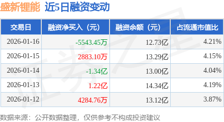 证券之星消息,1月16日,盛新锂能(002240)融资买入2.04亿元,融资偿还2.59亿元,融资净卖出5543.45万元,融资余额12.73亿元,近20个交易日中有11个交易日出现融资净买入。