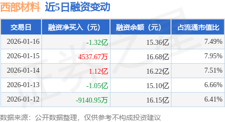 证券之星消息,1月16日,西部材料(002149)融资买入2.23亿元,融资偿还3.55亿元,融资净卖出1.32亿元,融资余额15.36亿元,近20个交易日中有13个交易日出现融资净买入。
