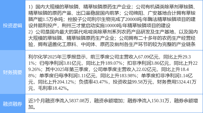 证券之星消息,利尔化学1月19日涨停收盘,收盘价16.38元。该股于10点36分涨停,未打开涨停,截止收盘封单资金为3833.82万元,占其流通市值0.29%。