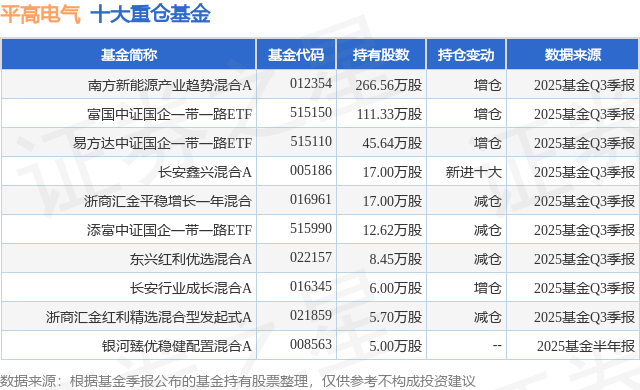 根据2025基金Q3季报公募基金重仓股数据,重仓该股的公募基金共9家,其中持有数量最多的公募基金为南方基金的南方新能源产业趋势混合A。南方新能源产业趋势混合A目前规模为7.33亿元,最新净值0.8107(1月16日),较上一交易日上涨0.37%,近一年上涨30.48%。该公募基金现任基金经理为熊琳。