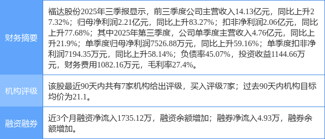 今日福达股份(603166)涨5.71%,收盘报17.97元。