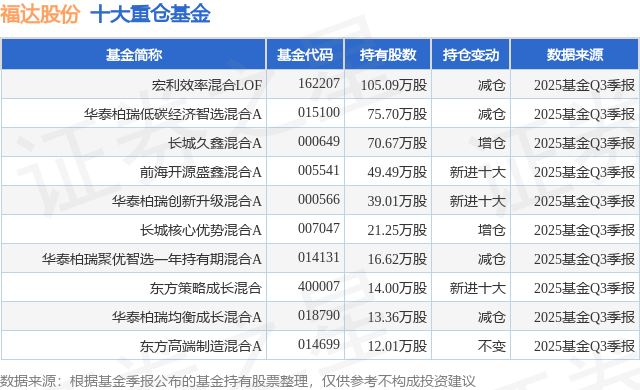 重仓福达股份的前十大公募基金请见下表: