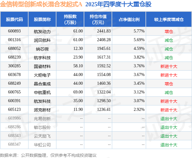 金信转型创新成长混合发起式A的前十大重仓股如下: