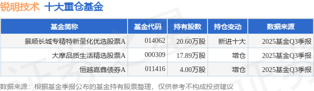 重仓锐明技术的公募基金请见下表: