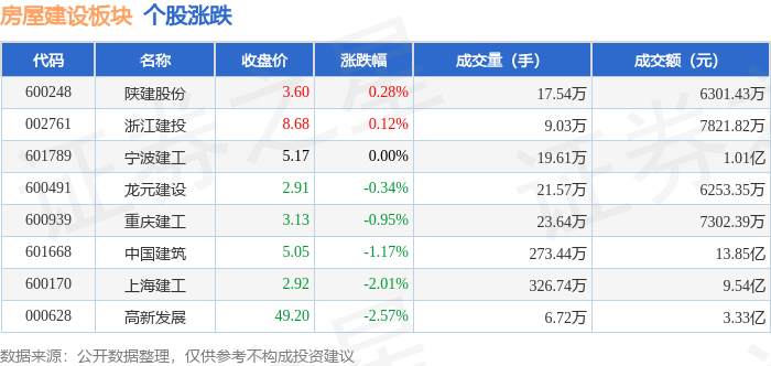 从资金流向上来看,当日房屋建设板块主力资金净流出2.72亿元,游资资金净流入1.62亿元,散户资金净流入1.1亿元。房屋建设板块个股资金流向见下表: