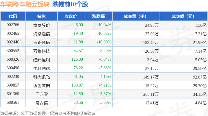 从资金流向上来看,当日车联网/车路云板块主力资金净流出69.33亿元,游资资金净流入17.4亿元,散户资金净流入51.93亿元。车联网/车路云板块个股资金流向见下表: