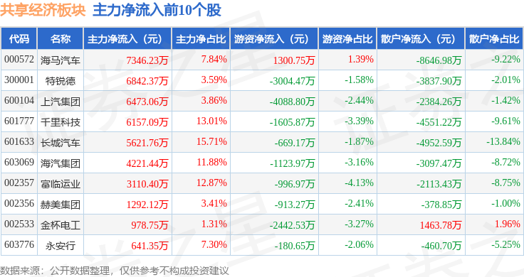从资金流向上来看,当日共享经济板块主力资金净流出4.65亿元,游资资金净流入1.15亿元,散户资金净流入3.5亿元。共享经济板块个股资金流向见下表: