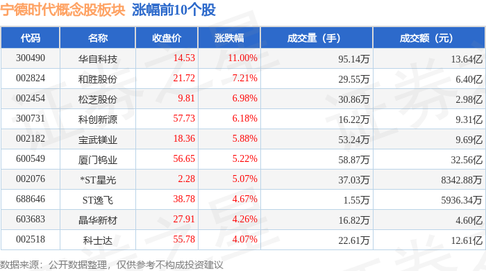 从资金流向上来看,当日宁德时代概念股板块主力资金净流出9.0亿元,游资资金净流入7.58亿元,散户资金净流入1.43亿元。宁德时代概念股板块个股资金流向见下表:
