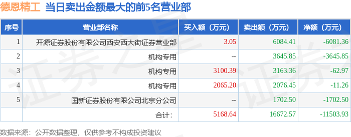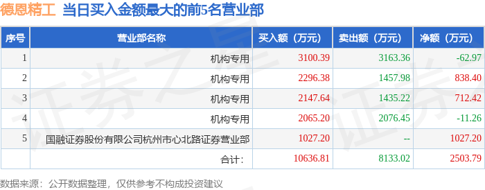 证券之星消息,沪深交易所2026年1月19日公布的交易公开信息显示,德恩精工(300780)因日换手率达到30%的前5只证券登上龙虎榜。此次是近5个交易日内第2次上榜。
