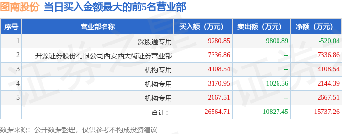 证券之星消息,沪深交易所2026年1月19日公布的交易公开信息显示,图南股份(300855)因日涨幅达到15%的前5只证券登上龙虎榜。此次是近5个交易日内第1次上榜。