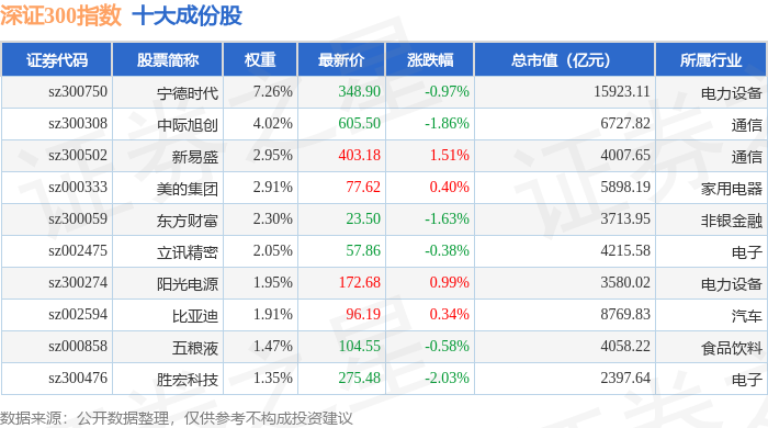 深证300(399007)指数十大成份股详情如下: