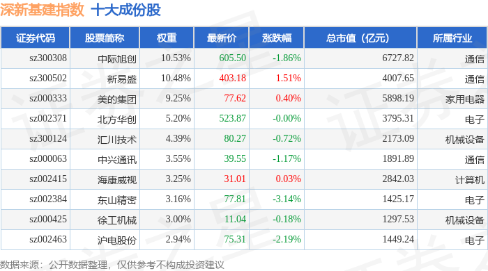 证券之星消息,1月19日,深新基建(399274)指数报收于6398.5点,跌0.75%,成交1483.45亿元,换手率2.66%。当日该指数成份股中,上涨的有13家,思源电气以10.0%的涨幅领涨,下跌的有37家,锐捷网络以12.14%的跌幅领跌。