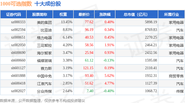 1000可选(399384)指数十大成份股详情如下:
