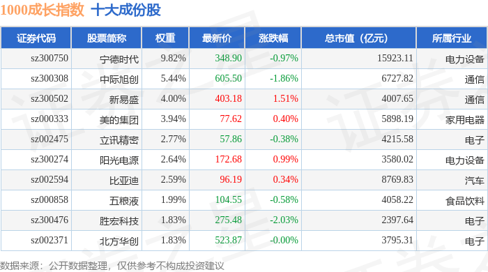 资金流向方面,1000成长(399630)指数成份股当日主力资金净流出合计120.63亿元,游资资金净流入合计35.15亿元,散户资金净流入合计85.48亿元。成份股资金流向详情见下表: