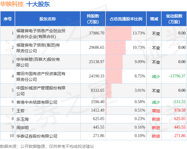 根据华映科技2025年三季报公布的十大股东详情如下: