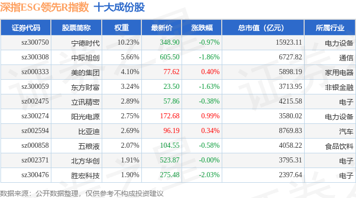 深指ESG领先R(470029)指数十大成份股详情如下: