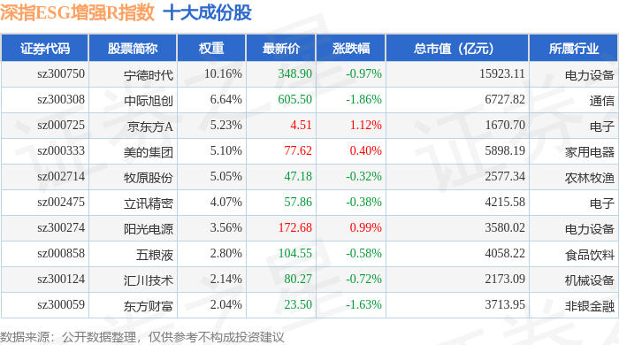 深指ESG增强R(470032)指数十大成份股详情如下: