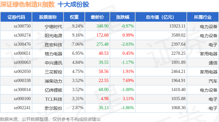 深证绿色制造R(470069)指数十大成份股详情如下:
