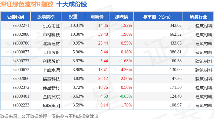 深证绿色建材R(470077)指数十大成份股详情如下: