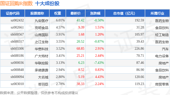 国证回购R(480063)指数十大成份股详情如下:
